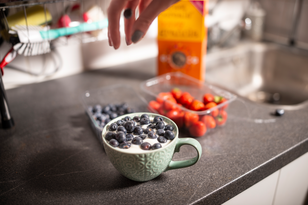 • Kiwi :79 mg vitamine C per 100 gram. Kiwi bevat een enzym dat eiwitten afbreekt. Kiwi in yoghurt? Dan wordt de yoghurt waterig.